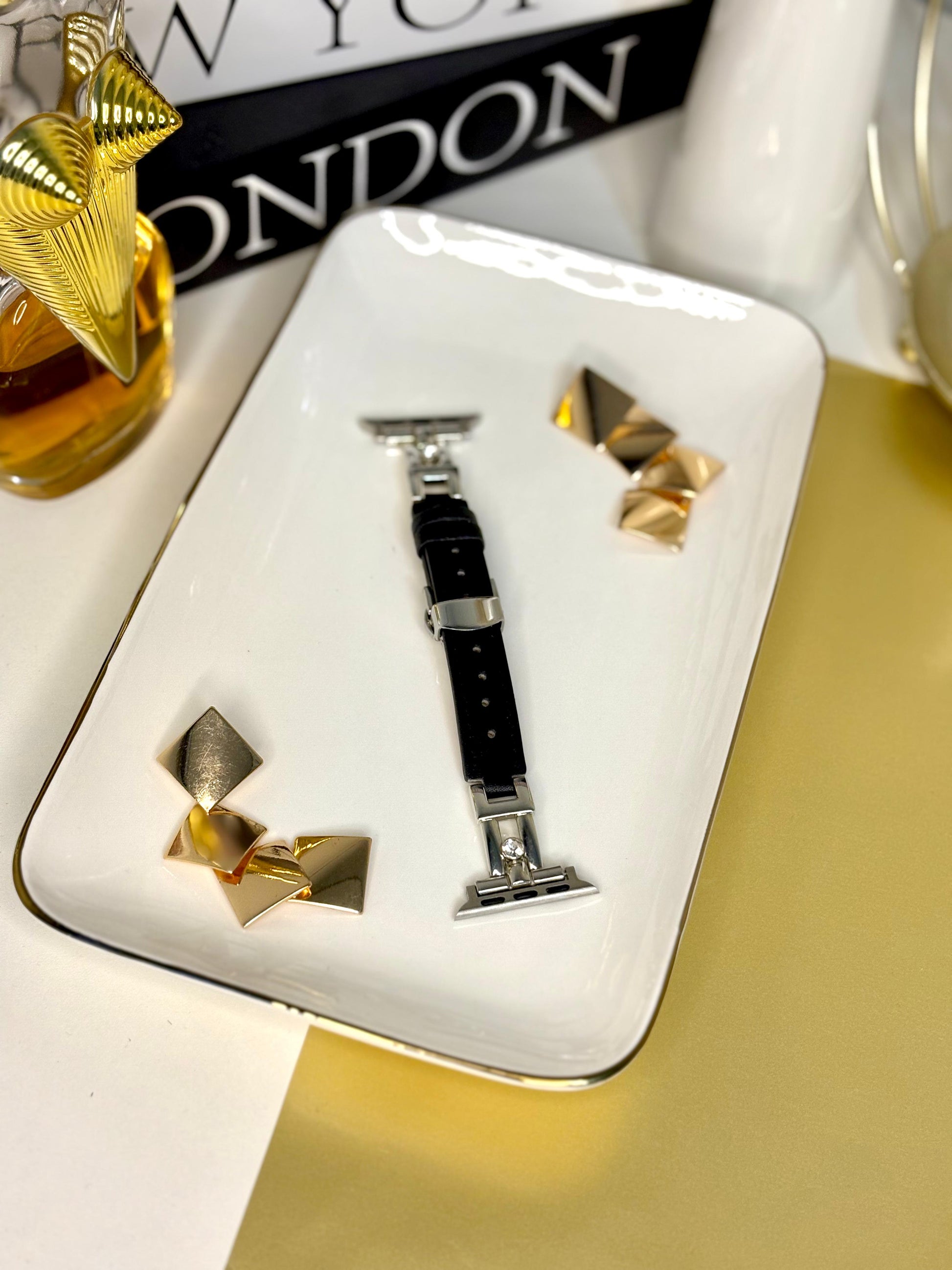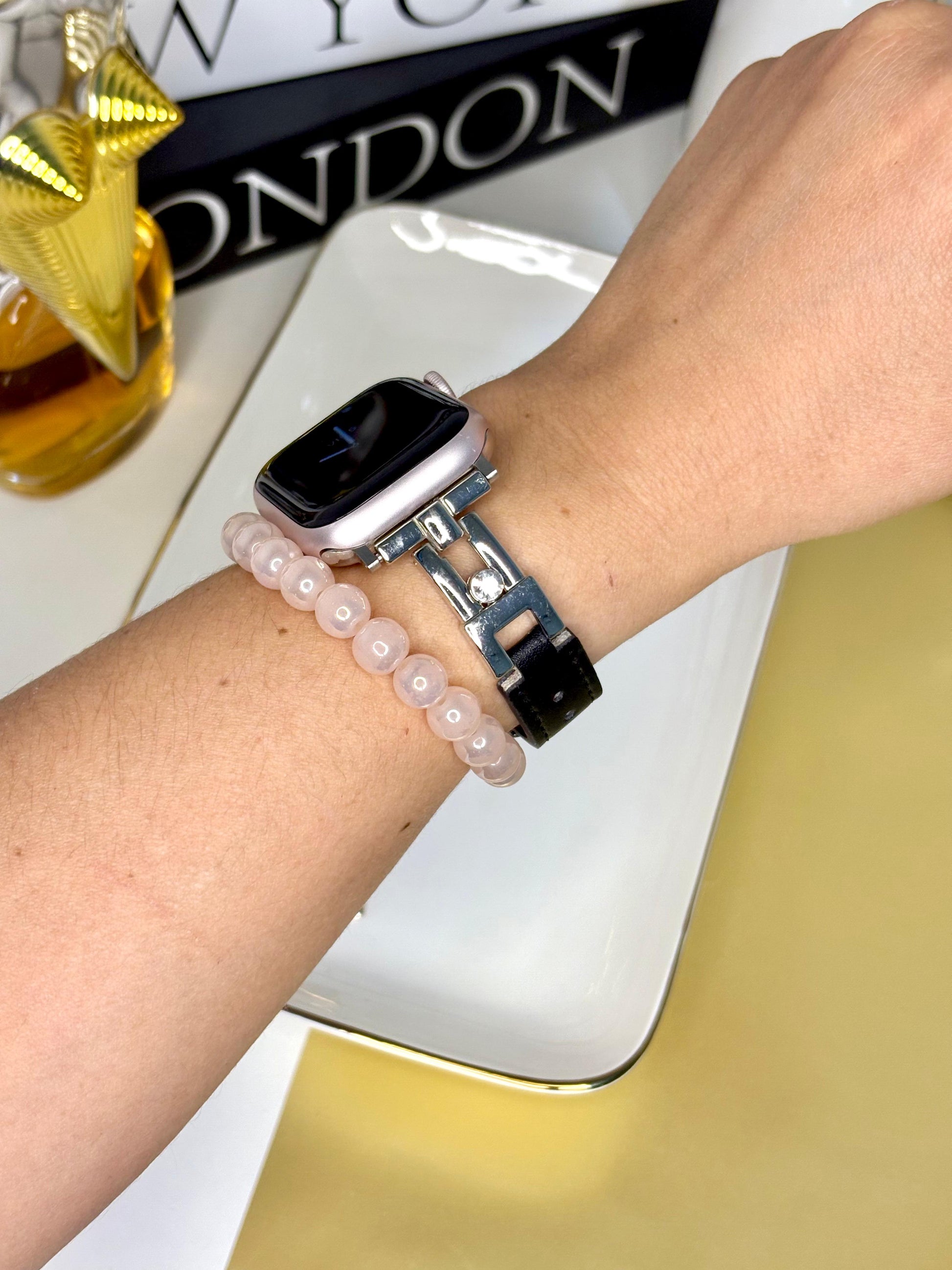 Correa Apple Wacth Cuerina Negra y Metal