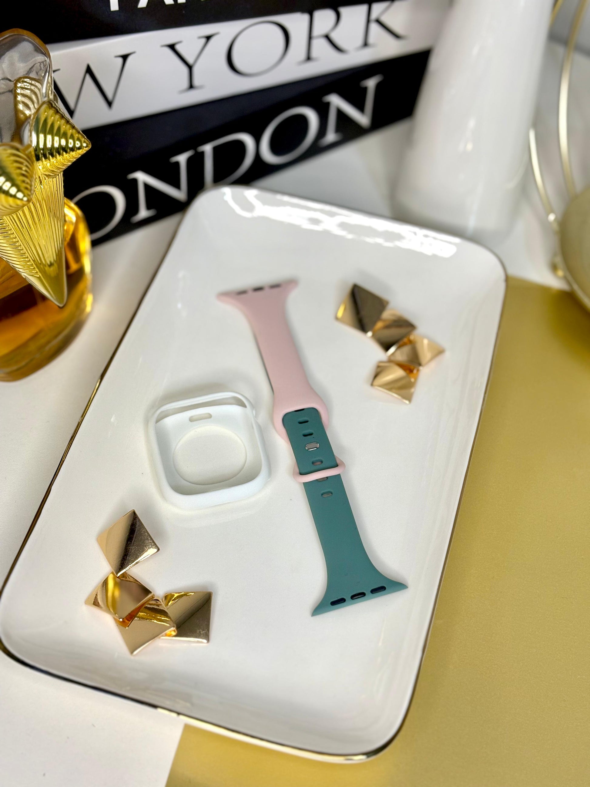 Correa Apple Watch Verde Tiffany y Rosa con Protector